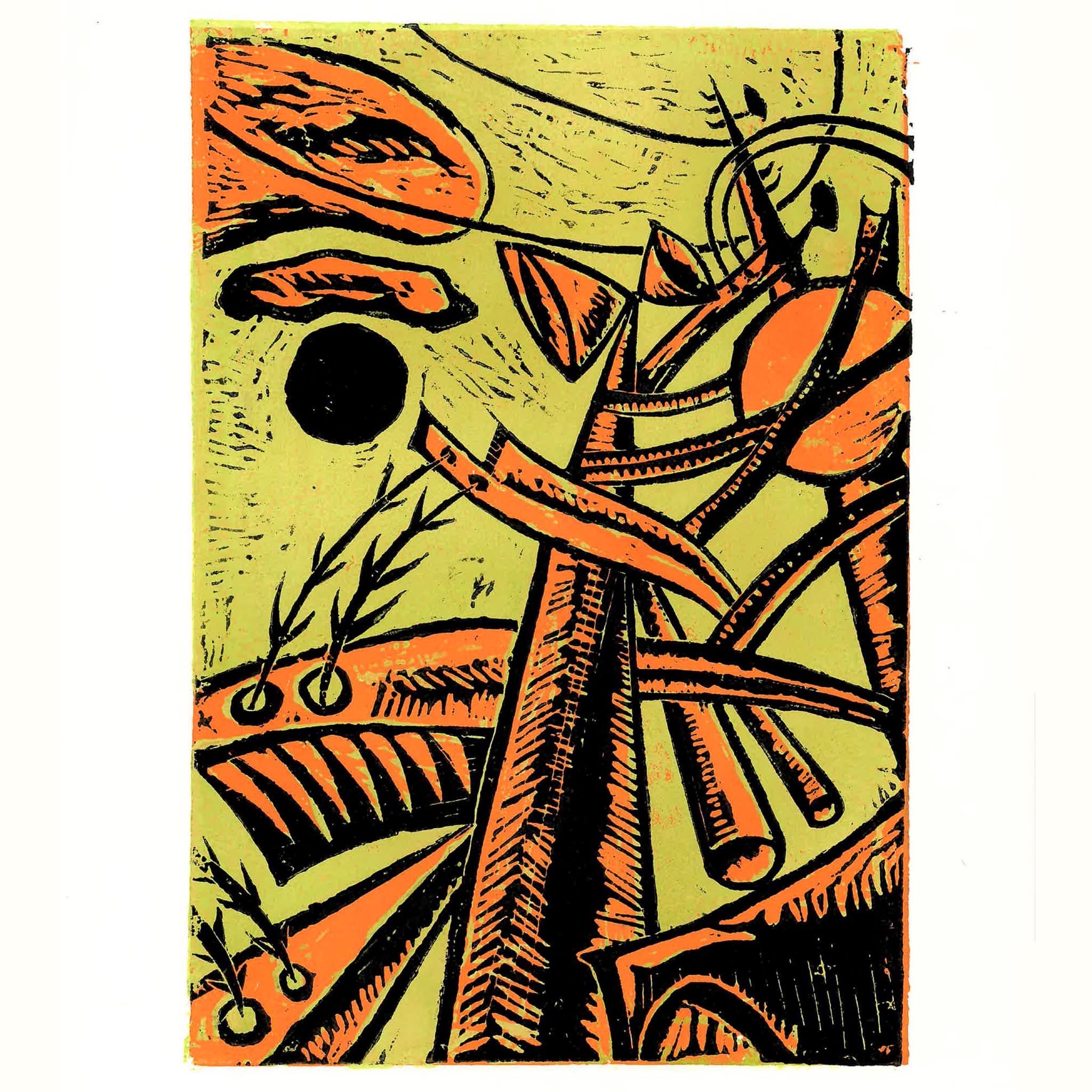 My expressionist style is heavily influenced by German Expressionism and Post-Impressionism and explores elements of my personal life, human’s relationship with nature, abstract forms and animal motifs. My communication tower series came about one afternoon when I was walking my usual route around the Wellington town belt and the communication tower on Mt Albert caught my eye, so I started drawing it. The wires, poles, antenna, and beams became a vessel to explore forms in a way that felt new and exciting. Back in the studio I chose my favourites of the many drawings and created the series.