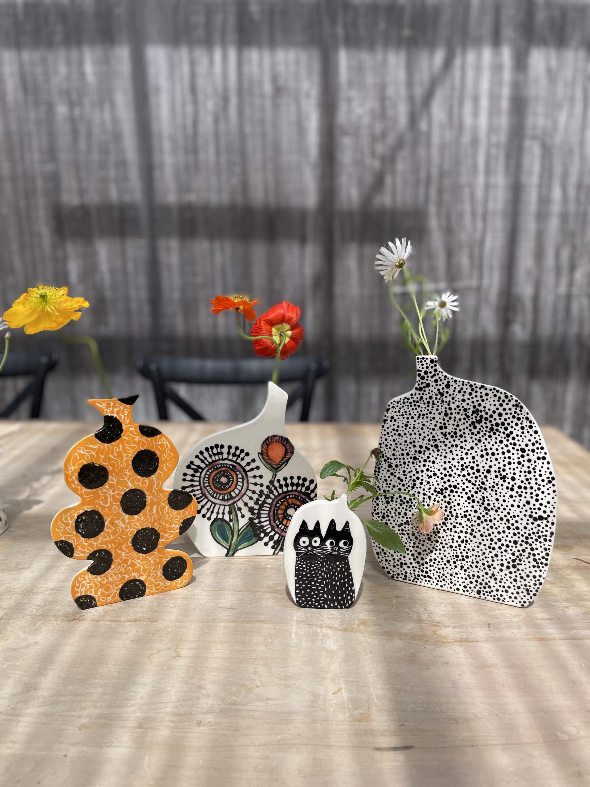 Build a bold, statement piece slab-built vase — think Greek vase, a bottle or jug or an abstract silhouette that’s totally out there. A half-cylinder at the back makes it functional to hold flowers, while the flat slab at the front becomes your playground to carve, stamp, stencil, colour block, sgraffito or invent your own twist. Every vase turns out completely different — and that’s where the magic is!