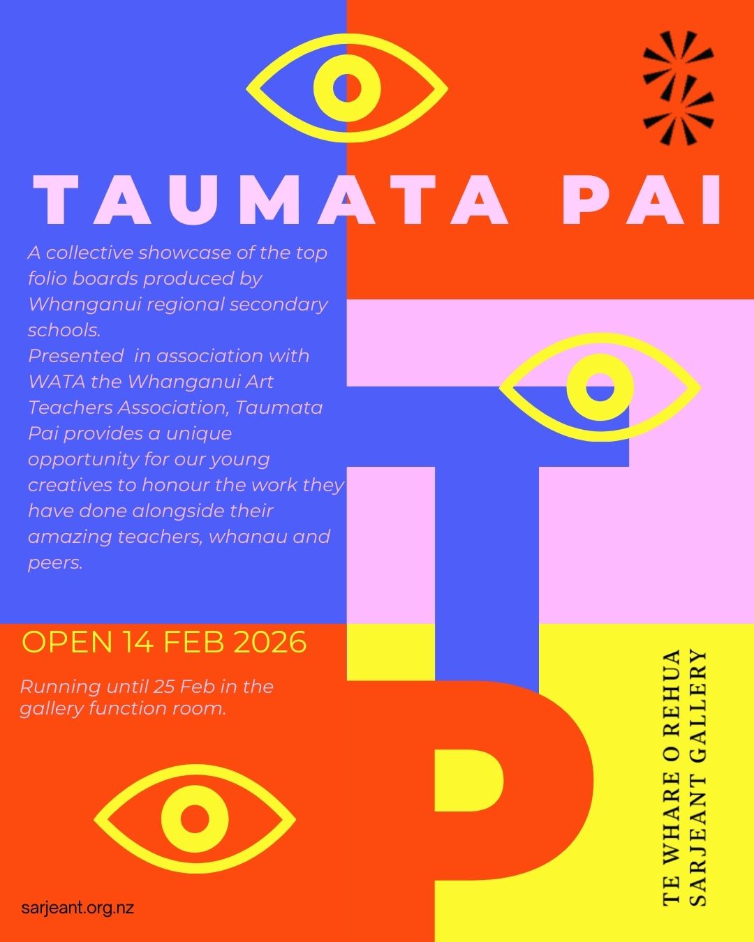 Taumata Pai is a collective showcase of the top level three folio boards produced by Whanganui’s regional secondary schools.  Presented in association with WATA the Whanganui Art Teachers Association, Taumata Pai provides a unique opportunity for our young creatives with a passion for the visual arts to honour the work they have done alongside their amazing teachers and peers.