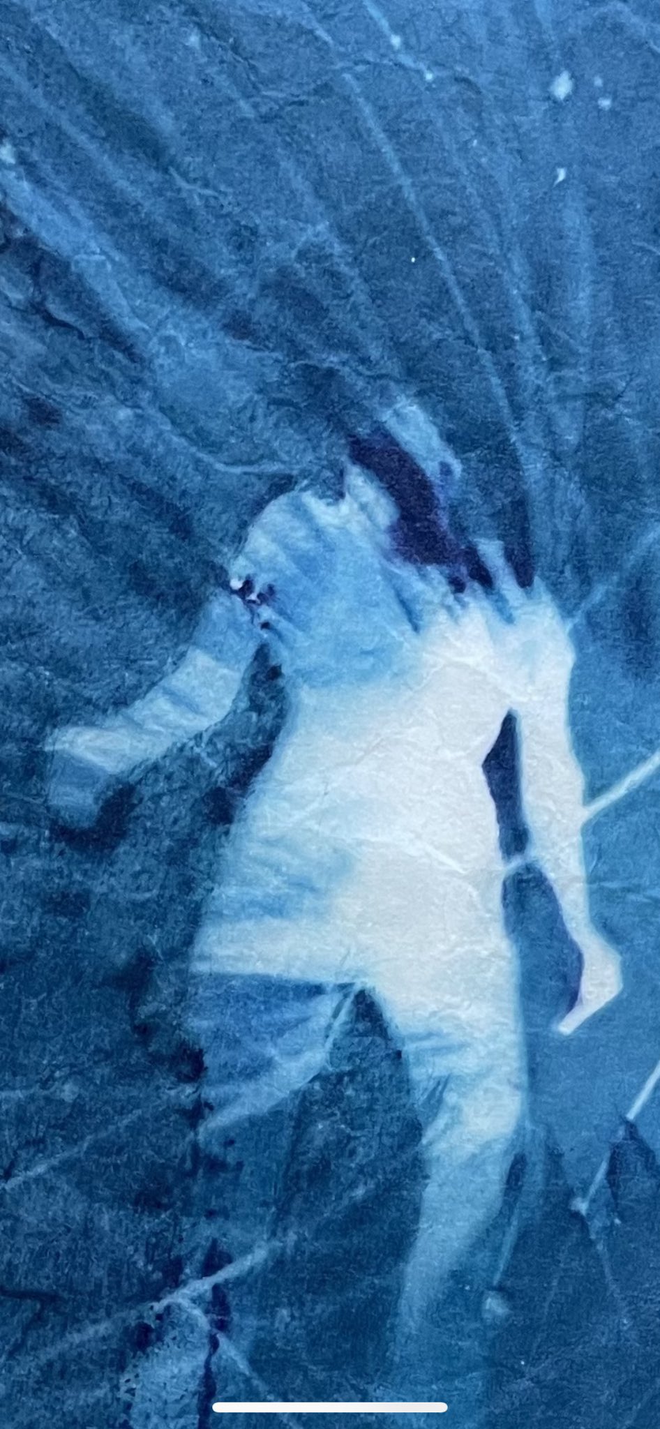 reasons of texture and mark-making, she prefers wet cyanoptype to dry.