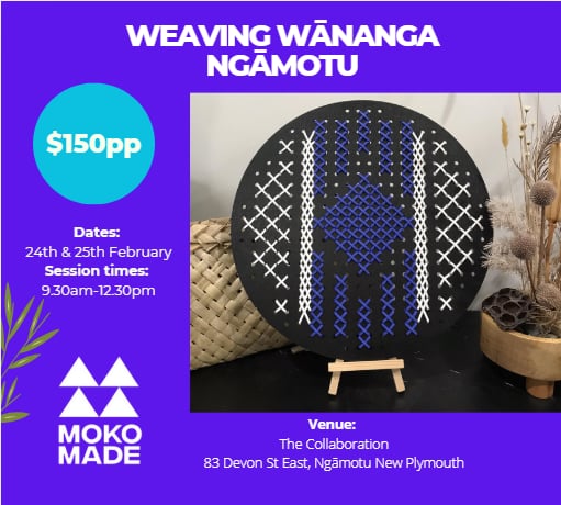 Join Ange Moko experienced workshop host for an enjoyable weaving wānanga (workshop) at The Collaboration. You are welcome to book a single space or book a group!