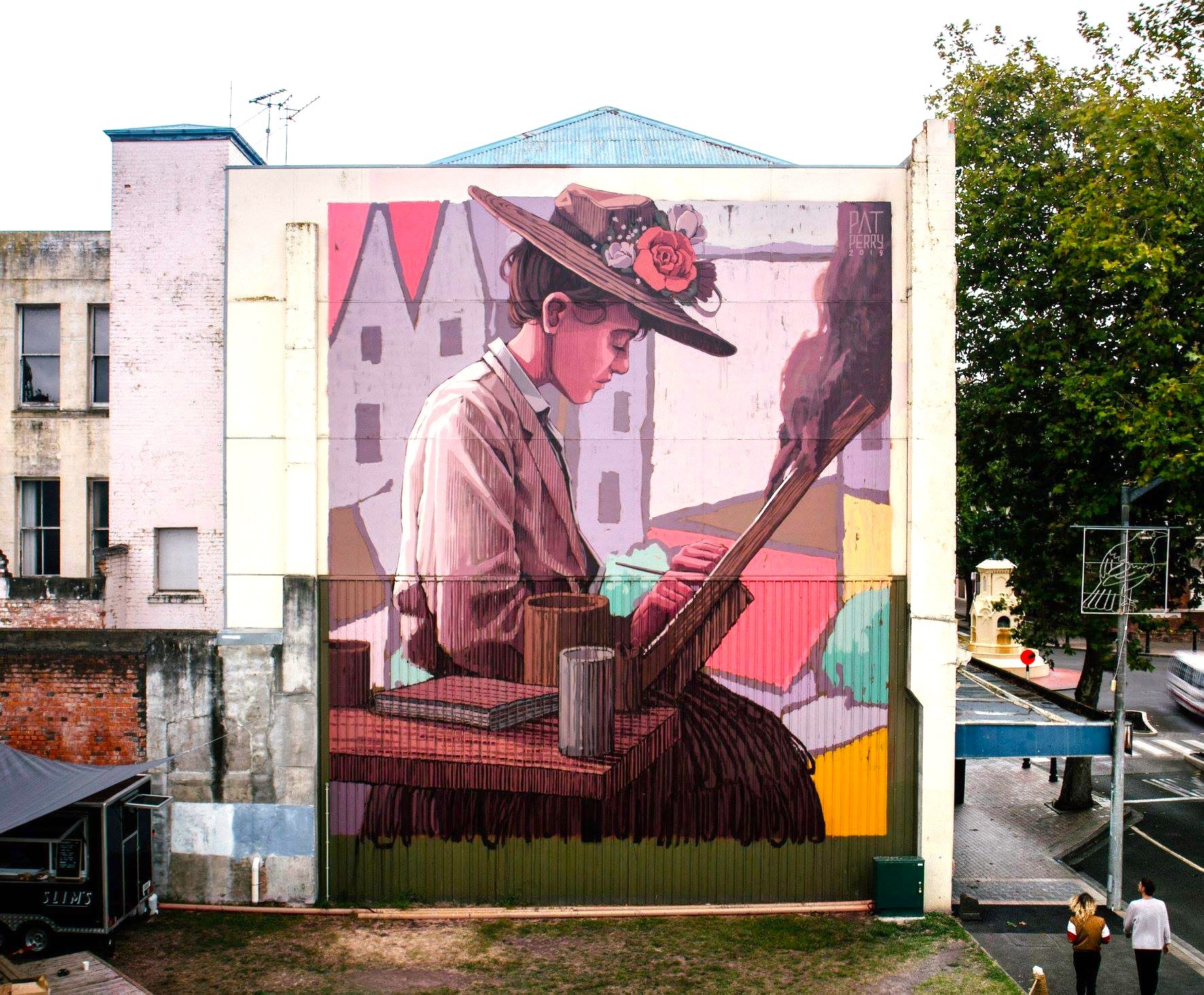 Perry elaborates, "I accidentally painted this mural on Edith Collier’s 134th birthday, in her hometown of Whanganui. Though she never really got the wider acclaim she deserved, she had a profound effect on the people her work touched nonetheless, which seems like the best any of us can hope for in the end."