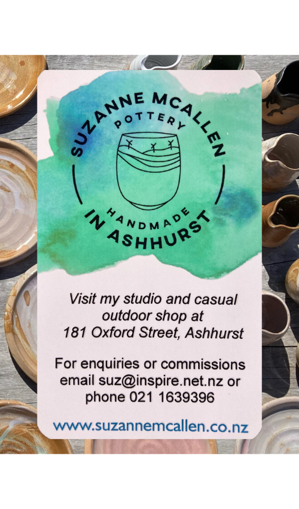 Suzanne McAllen is a skilled potter based in Ashhurst, creating unique and beautiful pieces that are both practical and artistic. Each piece is carefully considered and crafted with form and function in mind, with simple touches, such as a subtle thumbprint or a glaze run here and there to create a special connection between the maker and the user.
