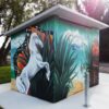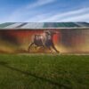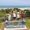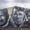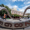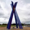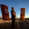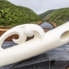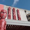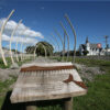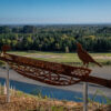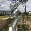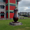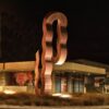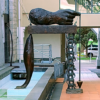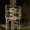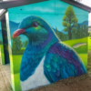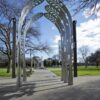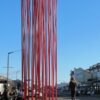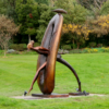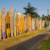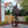A six-metre-high kinetic sculpture installed at Puke Ariki Landing (just outside Puke Ariki Museum) during the 2014 Kinetika Festival. The sculpture is a collection of giant pinwheels created with thin sheets of coloured fiberglass mounted with wire and attached to steel holders, allowing the pinwheels to spin freely. The spinning, twirling, dancing, swooshing whimsical sculpture reminds the artists of their childhoods in India, where alleyways came alive with motion, and they would run to see the Firkee-Wala peddling his toy pinwheels. 1 Ariki Street, New Plymouth Central, New Plymouth, New Zealand.