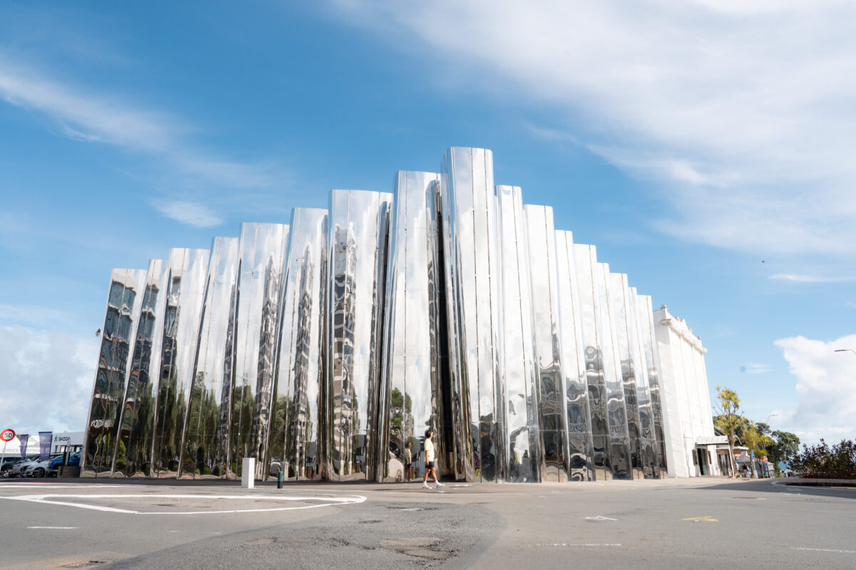 Your journey concludes in New Plymouth. Explore the Len Lye Centre | Govett-Brewster Art Gallery, known for its cutting-edge exhibitions and the iconic kinetic works of Len Lye, with private tours available to book. Nearby, The Collaboration is a design store and gallery showcasing the work of over 45 local designers and artists. Explore the Coastal Walkway, a 13.2km sea-edge promenade stretching from Port Taranaki to Bell Block Beach, offering stunning coastal views and a collection of public artworks, including Len Lye’s Wind Wand, Renate Verbrugge’s Mothers and Daughters, and John Reynolds’ Big Wave Territory. A short stroll from the walkway is Mr G’s I am Hana, on the exterior of the New Plymouth Library.